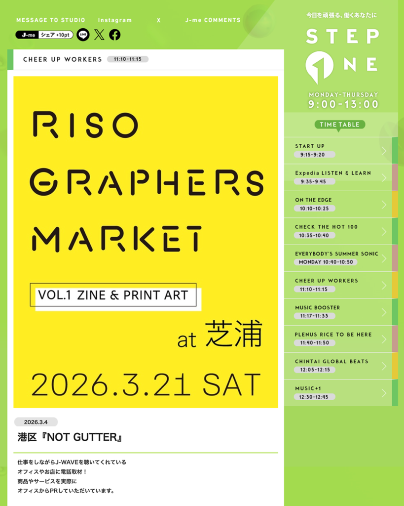 J-WAVE「STEP ONE」の「CHEER UP WORKERS」に
